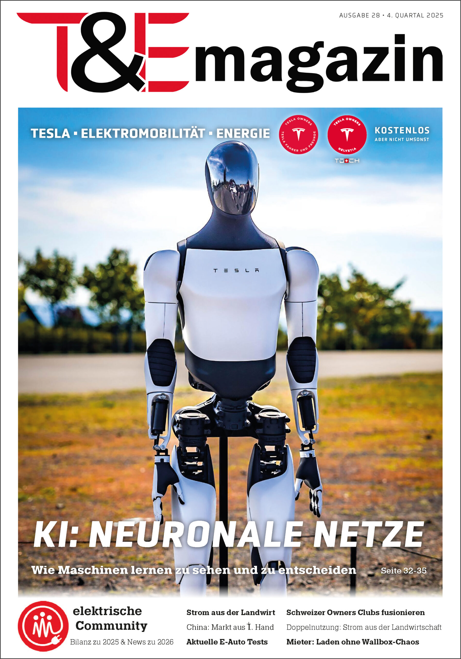 Erstmals zeigt das Titelbild kein Auto als Motiv und das hat einen Grund: Der Tesla Roboter Optimus geht demnächst in Serienproduktion. Martin Hund befasst sich im Titelthema der nun in Druck befindlichen 28. Ausgabe der Zeitschrift mit künstlichen neuronale Netzen. Denn KI ist nicht länger Theorie, sondern übernimmt immer mehr Aufgaben. Wann wird der Tesla Bot nicht nur als Schaufenster-Puppe nach Deutschland kommen?