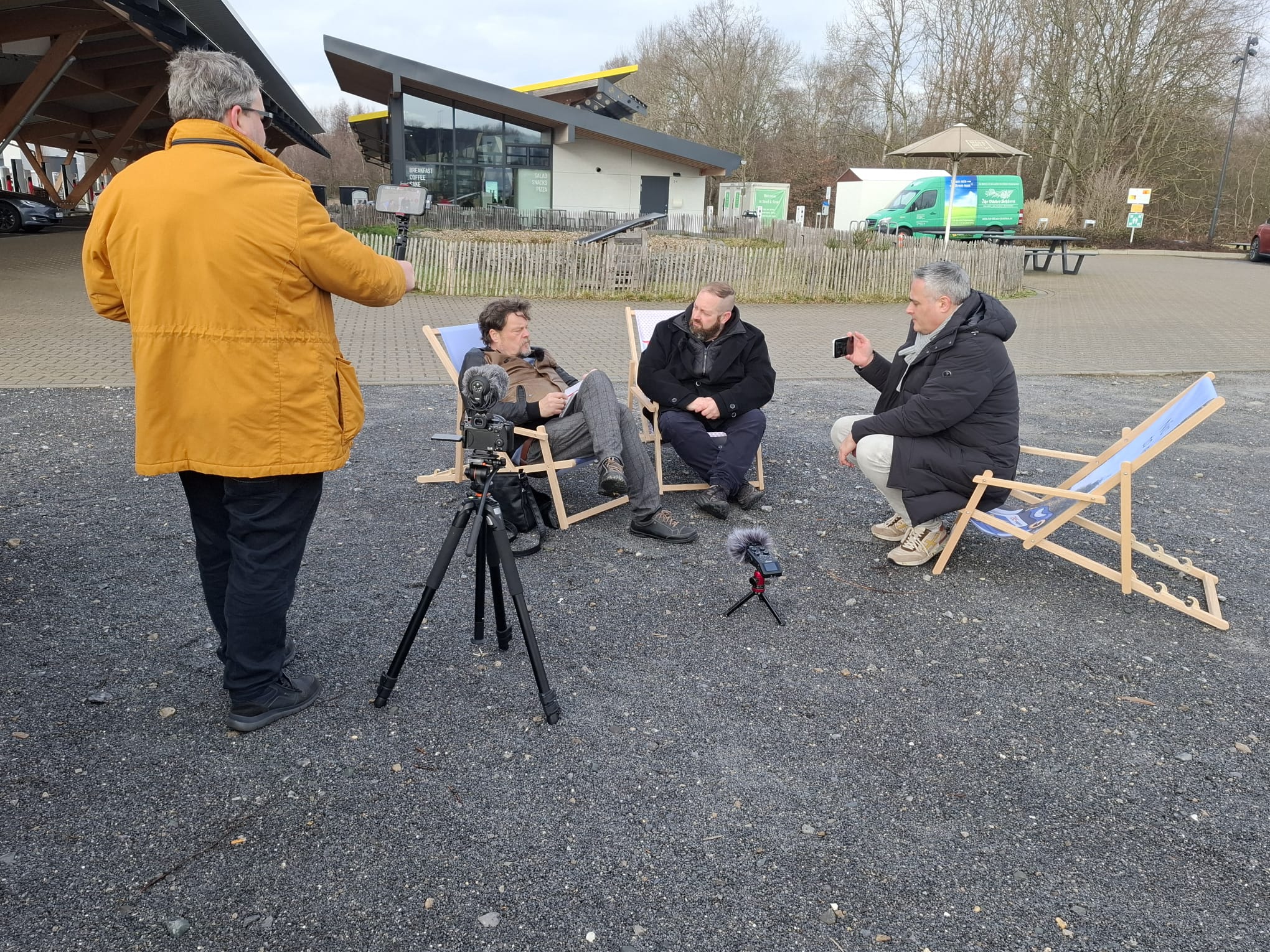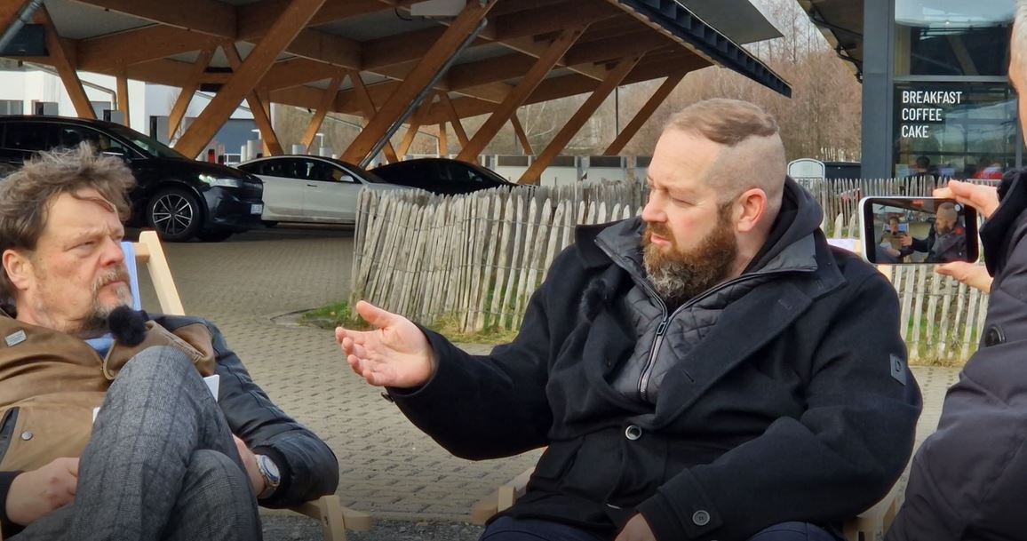 Timo: Ja, die Innovator-Serie filmen wir üblicherweise auf der Uwe-Düne. Im Hintergrund ist die Uwe-Düne. Allerdings befindet sie sich hinter einem Zaun und irgendwie ist sie auch in einem sehr gebrechlichen Zustand. Und deswegen haben wir uns jetzt ganz gemütlich hier mal direkt vor den Ladepark gepflanzt, um uns heute mit Carsten zu unterhalten. Besser bekannt als der Pommes-Män.