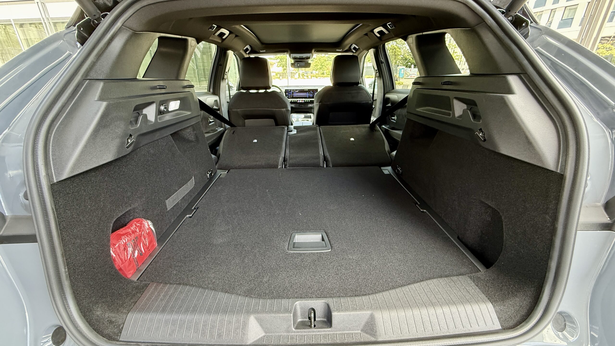 Hinten wie vorn bleibt der Grandland funktional. Der elektrische Kofferraum öffnet zu 485 Litern, die sich durch Umklappen der Rückbank auf 1580 Liter ausdehnen.