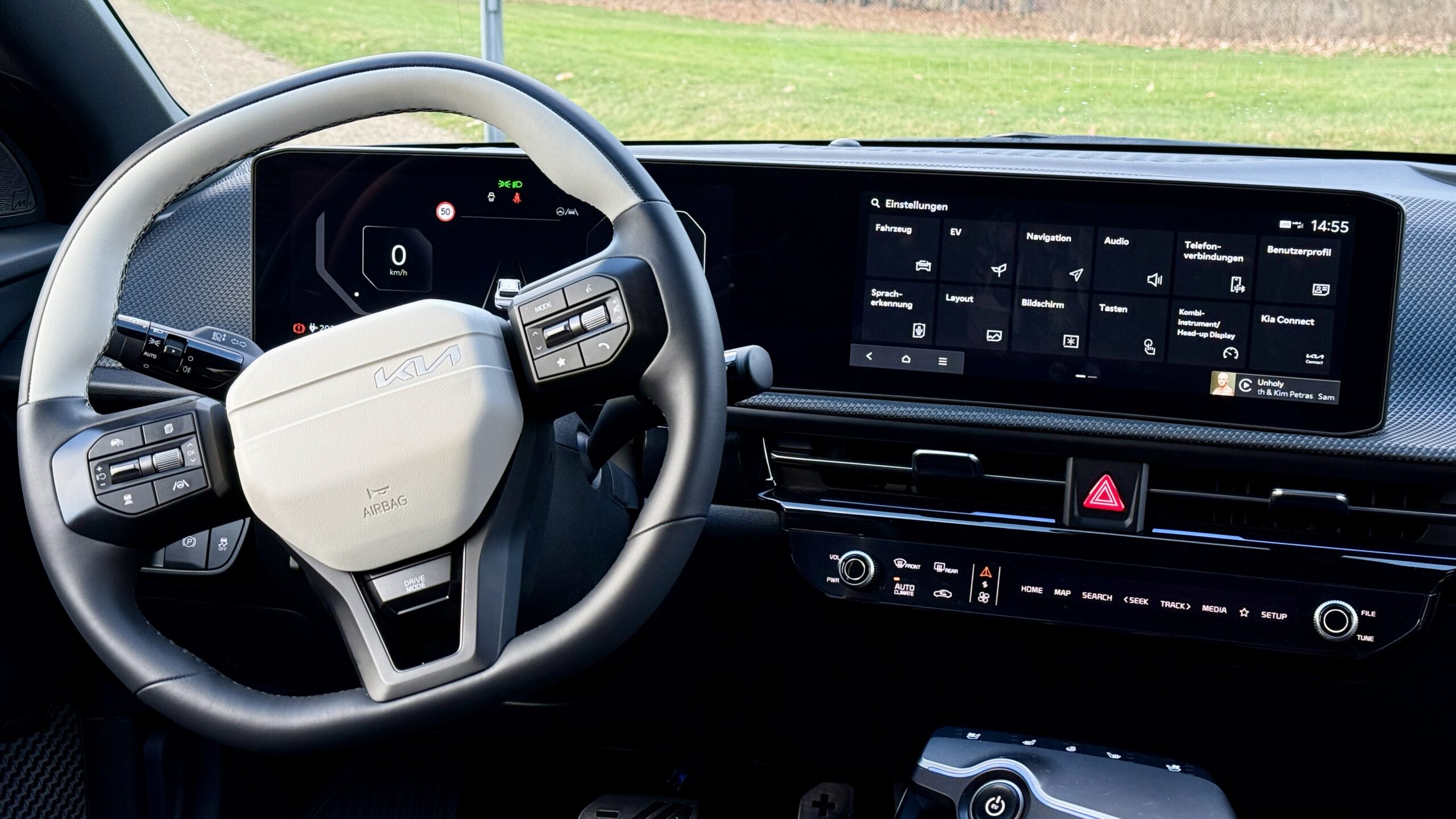 Im Innenraum hat Kia auf seine Kundschaft gehört und endlich die Klavierlackoberflächen durch eine neue anthrazit matt angeraute Oberfläche ersetzt – wirkt deutlich wertiger und unempfindlicher.