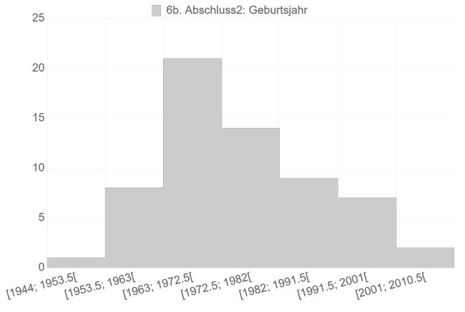 Wenn man sich die Altersverteilung der Besucher anschaut sieht man Schwerpunkte bei den mittleren Jahrgängen. Am häufigsten vertreten waren die Jahrgänge zwischen 1963 und 1982.