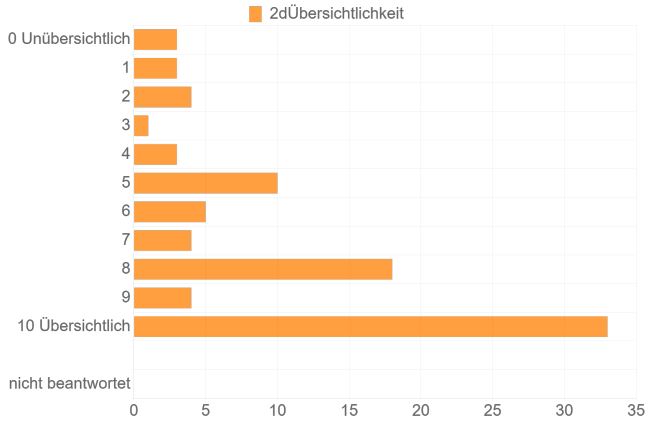 In puncto Übersichtlichkeit der Messe sind die werte 8 und 10 dominant, diese wurde also klar positiv bewertet.