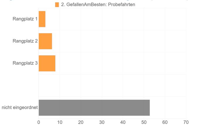 Wie man anhand der Grafik unten sieht, haben die Besucher nur selten die Probefahrten als ihr persönliches Highlight angegeben.