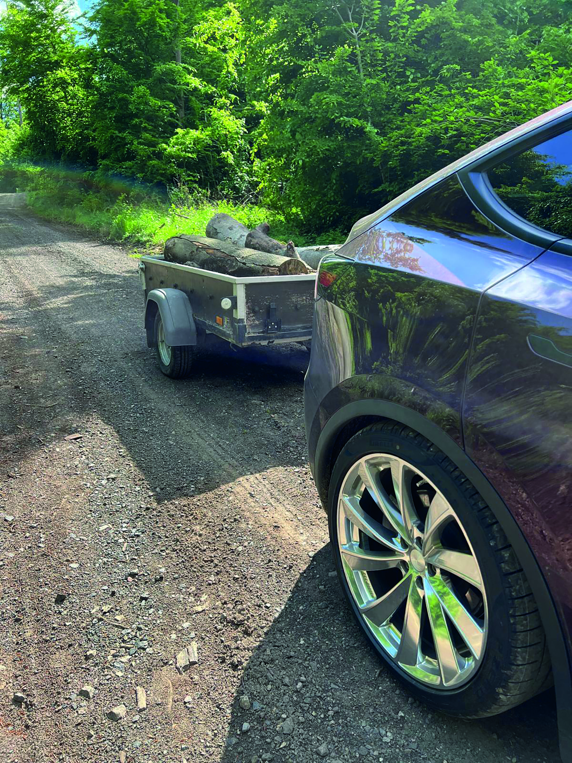 Heute ist es so etwas wie ein Hobby, mit dem Auto und einem kleinen Anhänger sonst verrottendes Restholz in einem staatlichen Waldareal zu nutzen und darauf zu laden. Es wird anschließend in kamingerechte Stücke gesägt. Natürlich beides vollelektrisch.