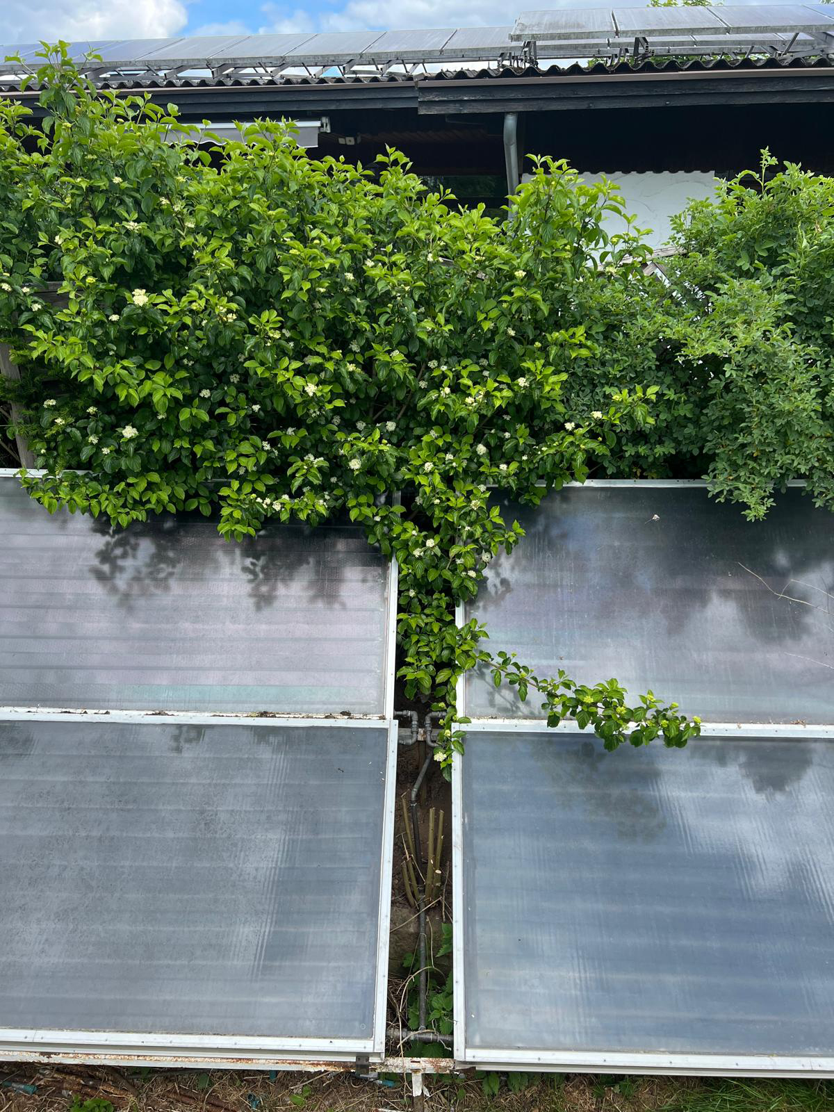 In den frühen Zweitausenderjahren war viel von energetischer Autarkie die Rede. Eine thermische Solaranlage zur Warmwassererzeugung war Teil der vermeintlichen Lösung. Da ich bereits früh das Dach mit Photovoltaik belegt hatte, wurde diese in Südausrichtung vor das Haus am Hang aufgestellt. Undichtigkeiten führten dazu, dass die mit Glykol versetzte Flüssigkeit laufend nachgefüllt werden musste. Die Kosten dürften dabei zwar weit unter denen des eingesparten Heizöls liegen, doch wurmte mich dies ungemein. Auch die anstelle des ursprünglich offenen Kamins von einem Kaminbauer aus der Region eingesetzte, gebraucht gekaufte Kaminkassette muss im Nachhinein als halbherzige Lösung gewertet werden. Ein wasserführendes System wäre hier sicherlich die bessere Alternative gewesen.