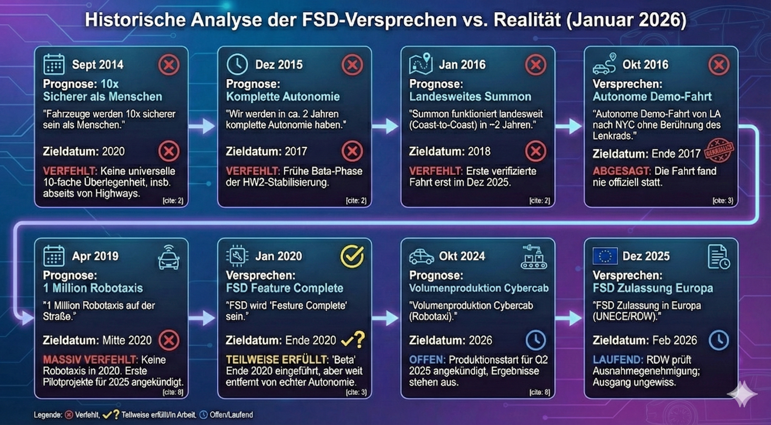 Der Mythos der Autonomie: Eine definitive Chronik von Teslas Full Self-Driving (2014–2026)